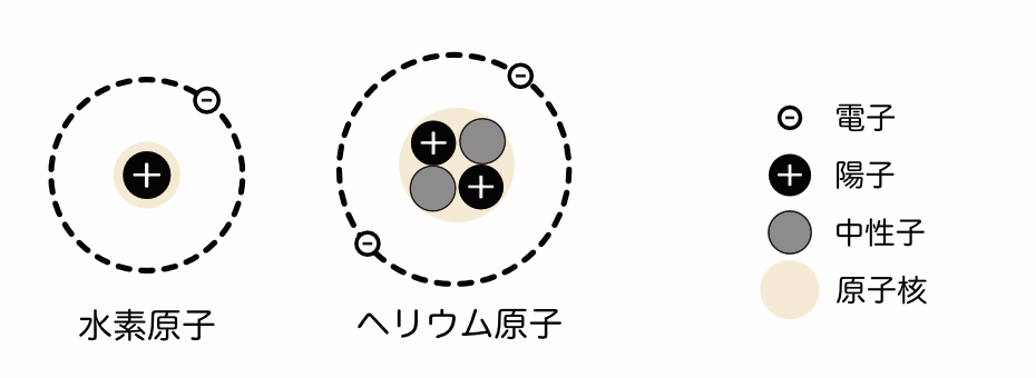 原子は、中心に正の電荷を持つ原子核とその周りを飛び回っており負の電荷を持つ電子からできています。原子核は正の電荷を持った陽子と電荷を持たない中性子からできています。その、原子核中の陽子数を原子番号といいます。原子核の周りを回る電子の道筋(正確には電子の動き回るところ)を電子軌道と呼びます。電子は、軌道が平面ではなく球状で立体的なのでその軌道を殻(電子殻)とも呼んでいます。